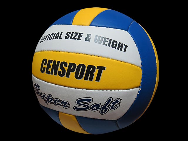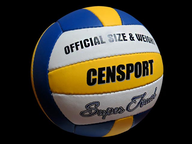 Balón de Volleyball Censport, cubierta en PU y laminado de algodón y poliéster, cosido a mano. Cámara y válvula de butilo. Disponible en tamaño 4 y 5.